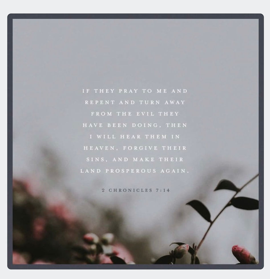 “if my people, which are called by my name, shall humble themselves, and pray, and seek my face, and turn from their wicked ways; then will I hear from heaven, and will forgive their sin, and will heal their land.”
